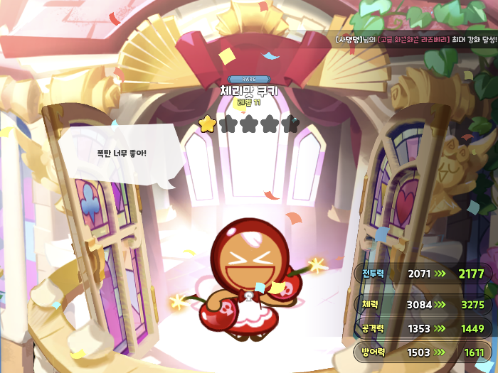 체리맛 쿠키부터 일단 1성을 만들어 줍니다.