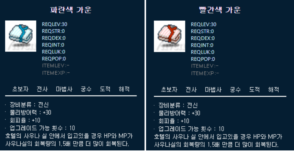 파란색 가운, 빨간색 가운 둘중에 1가지를 고를 수 있고