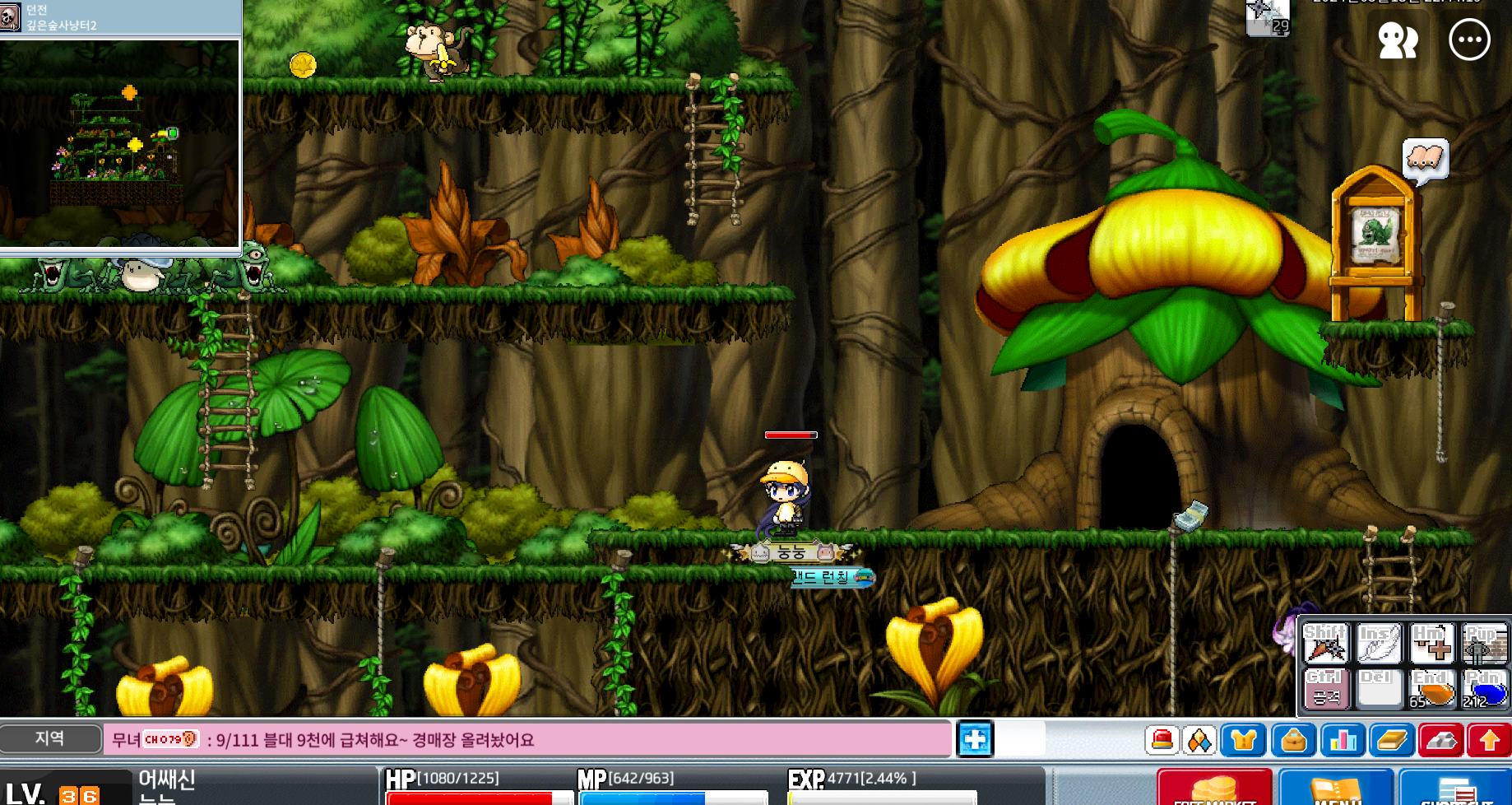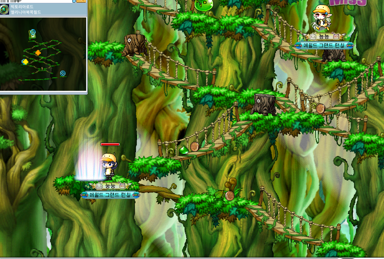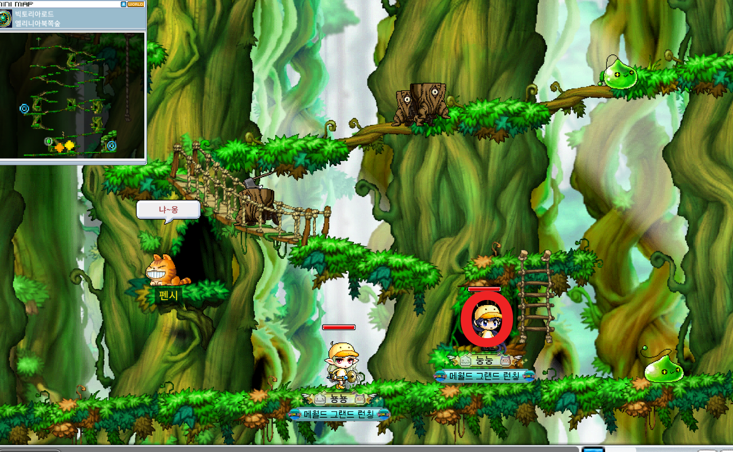 슬리피우드 마을 좌측->우측 하단->우상단 사다리위에 위치한 깊은숲사냥터2로 와줍니다.
