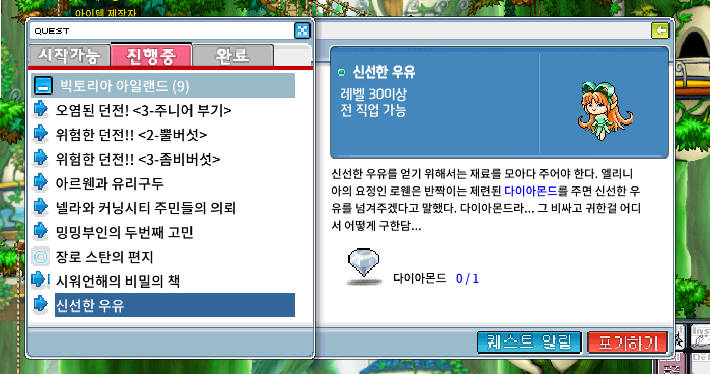 일단 해당 퀘스트는 31레벨부터 시작할 수 있고