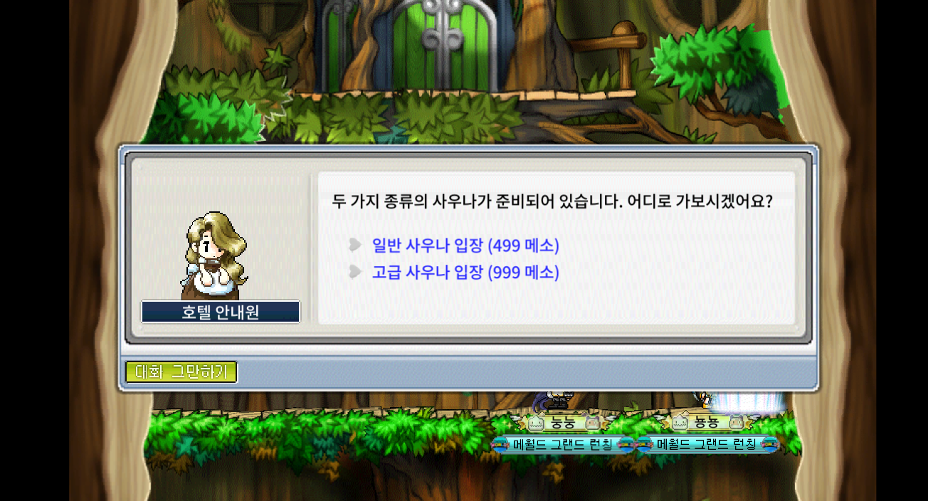 일반 사우나안에 npc는 상점 npc라서 고급으로 들어가셔야 합니다.