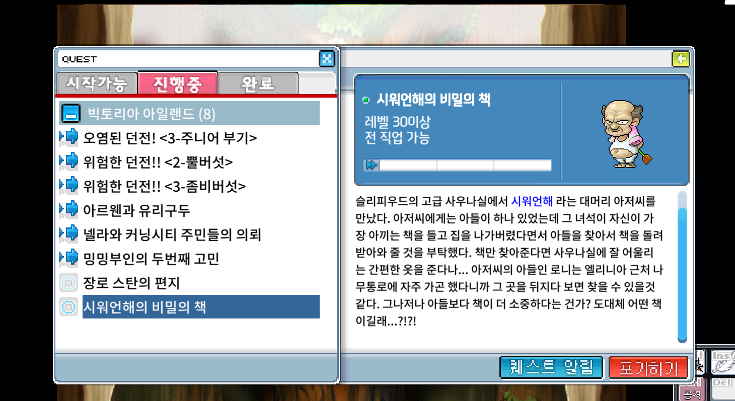 대머리 아저씨가 비밀의 책을 찾아달라는 퀘스트를 줍니다.
