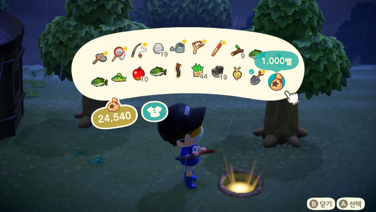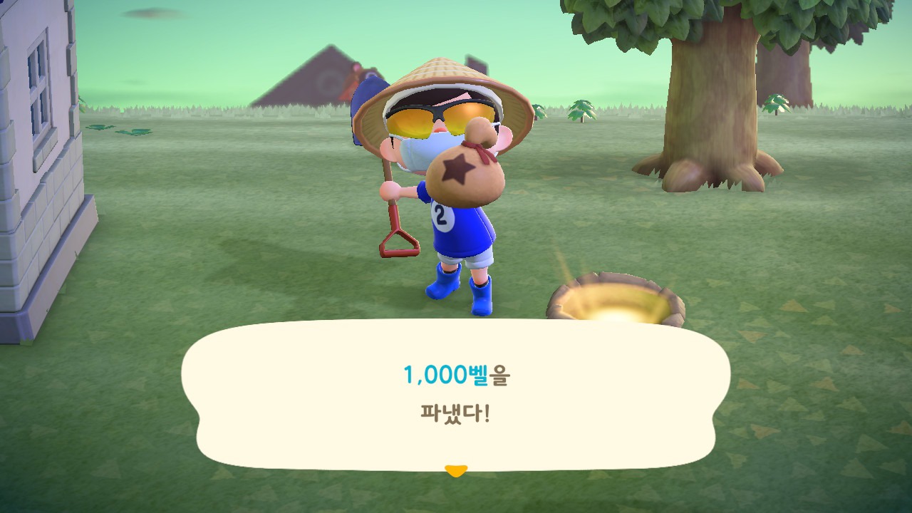동물의 숲을 하다보면 바닥에 반짝이는 빛 같은 것을 발견하죠? 바로 그 밑에 돈 주머니가 있는데요
