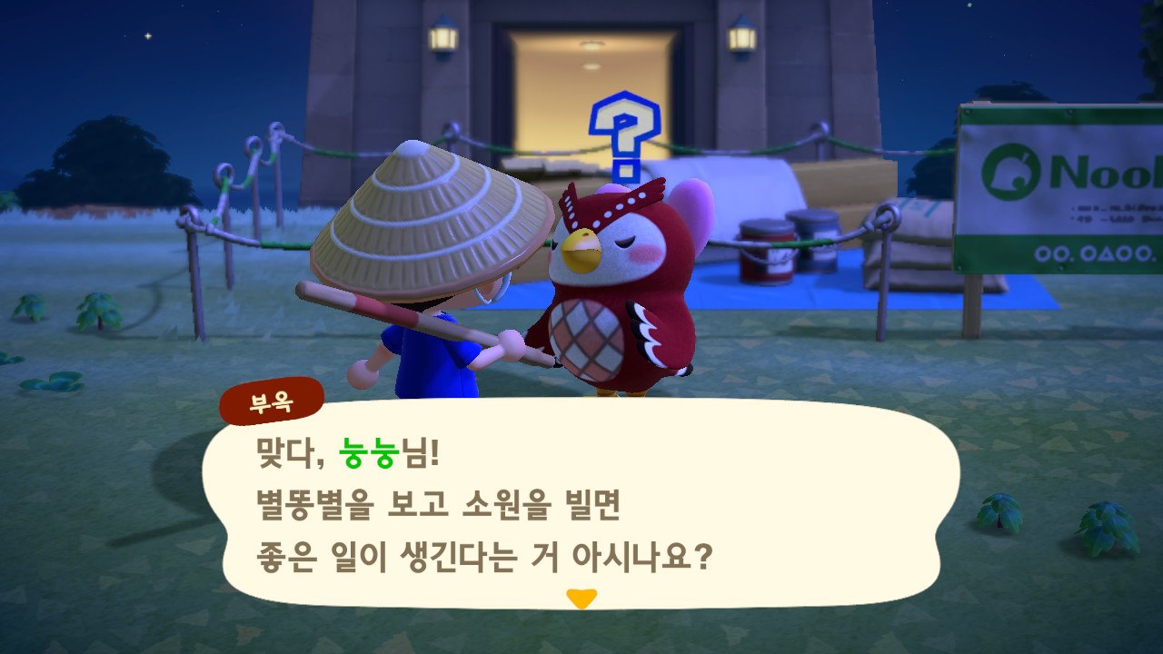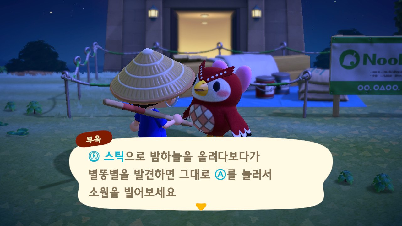 동물의 숲을 하다보니 부엉이 여동생이 등장했고 밤에 떨어지는 별똥별에 기도를 해볼 수있는데요